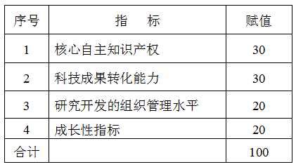 高新技术企业认定的具体评价指标包括知识产权、科技成果转化能力、研究开发的组织管理水平、成长性指标等四项。该四项指标用于评价企业利用科技资源进行创新、经营创新和取得创新成果等方面的情况,评价采取加权记分方式,须达到70分以上(不含70分)。四项指标权重结构详见下表: